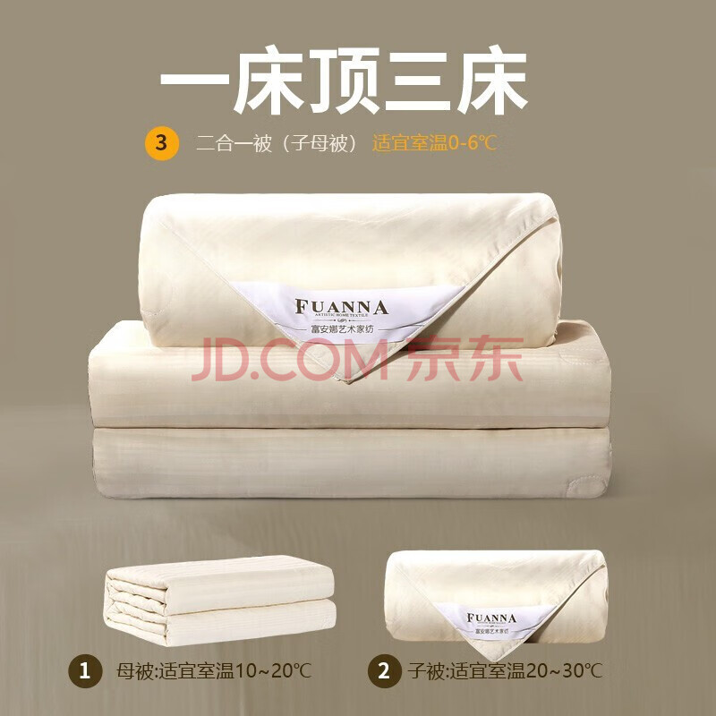 商品相册:富安娜蚕丝被100%蚕丝被子母被单人冬季被芯二合一冬被约8.2斤203*229cm第