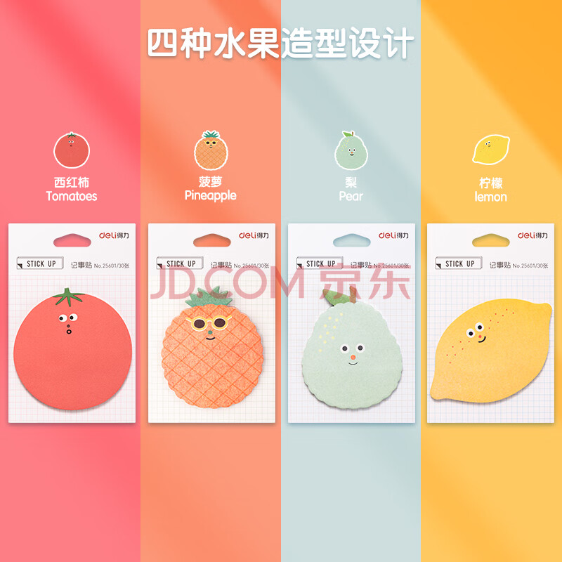 商品相册:得力(deli)24本720页水果主题记事贴 创意可爱留言纸/便利贴/自粘留言本开学必备 25601第