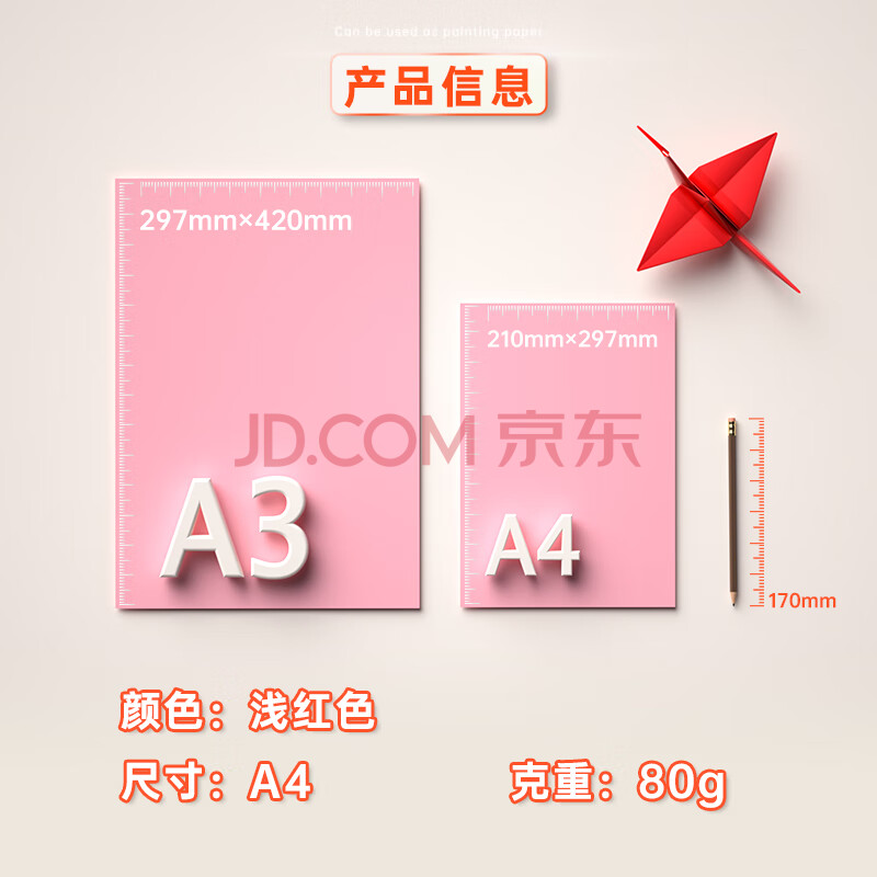 商品相册:得力(deli)A4 80g浅红色粉红复印纸 彩色打印纸 儿童手工折纸剪纸彩纸 非硬卡纸 100张/包7757【经典热销】第