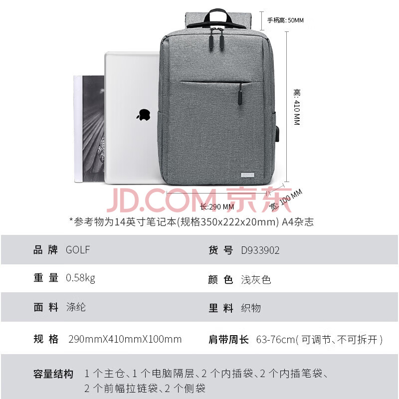 商品相册:高尔夫(GOLF)双肩包男韩版背包14英寸电脑包商务男女休闲旅行包学生书包第