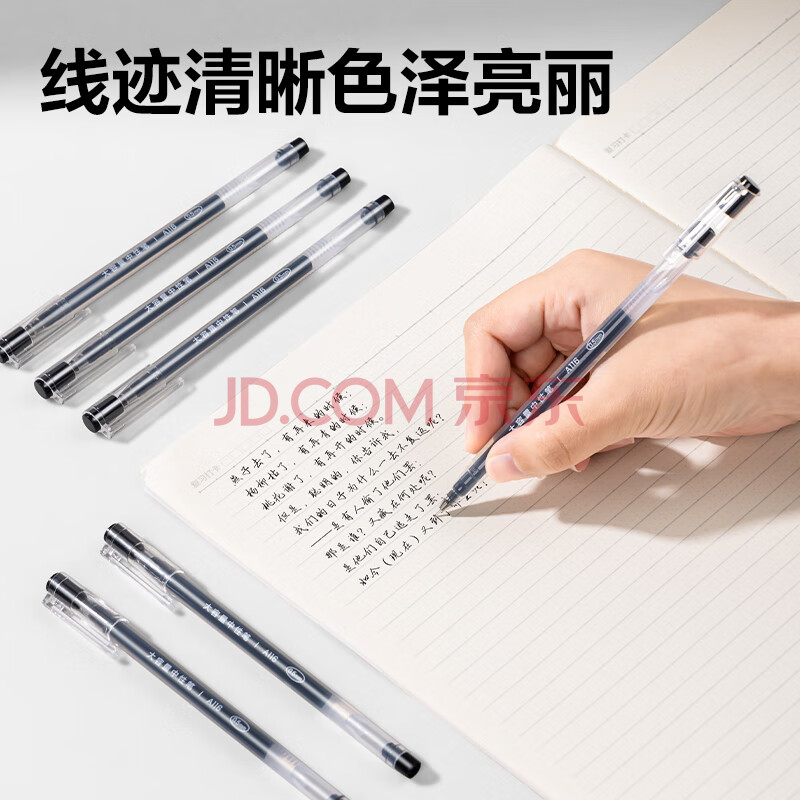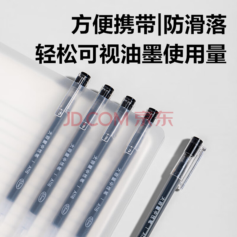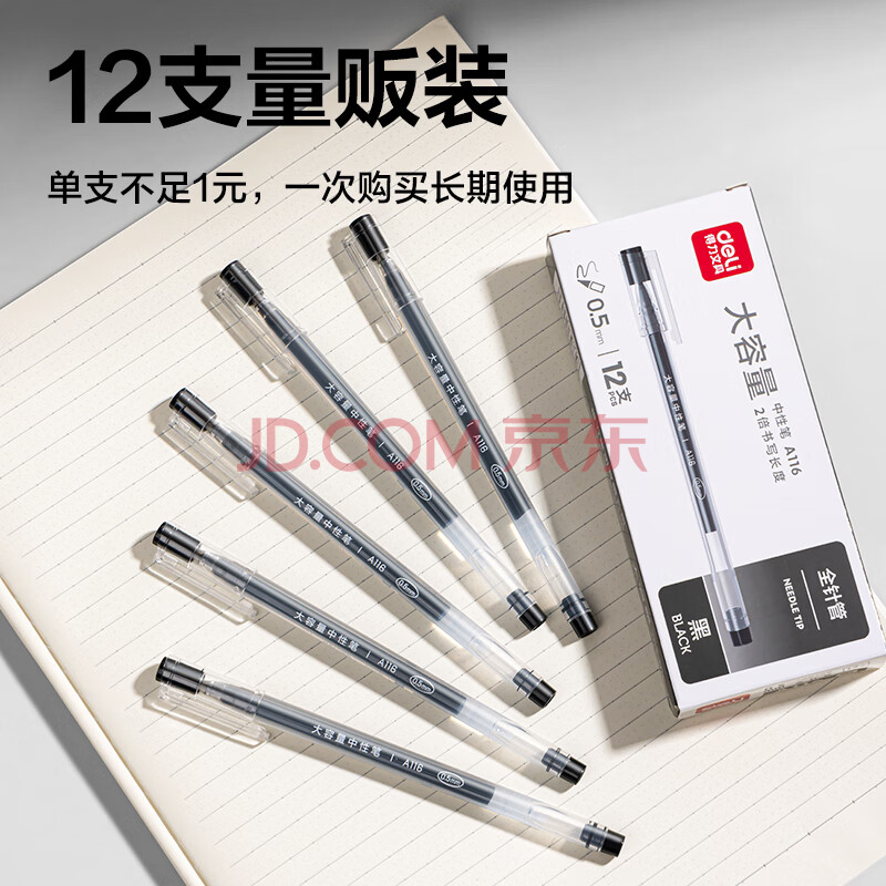 商品相册:得力(deli)【热门商品】大容量全针管中性笔签字笔 笔芯笔身一体化0.5mm黑色12支/盒DL-A116 学生用品第
