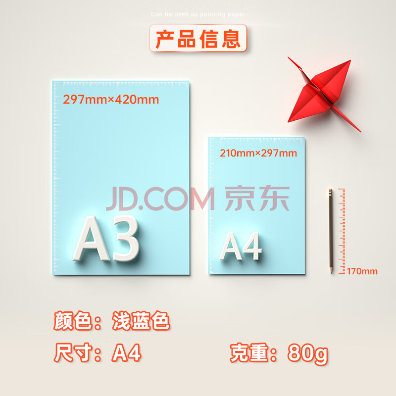 商品相册:得力(deli)A4 80g浅蓝色复印纸 彩色打印纸 儿童手工DIY折纸剪纸彩纸 非硬卡纸 100张/包 7757【经典热销】第