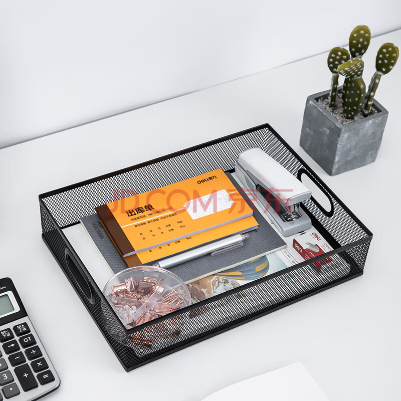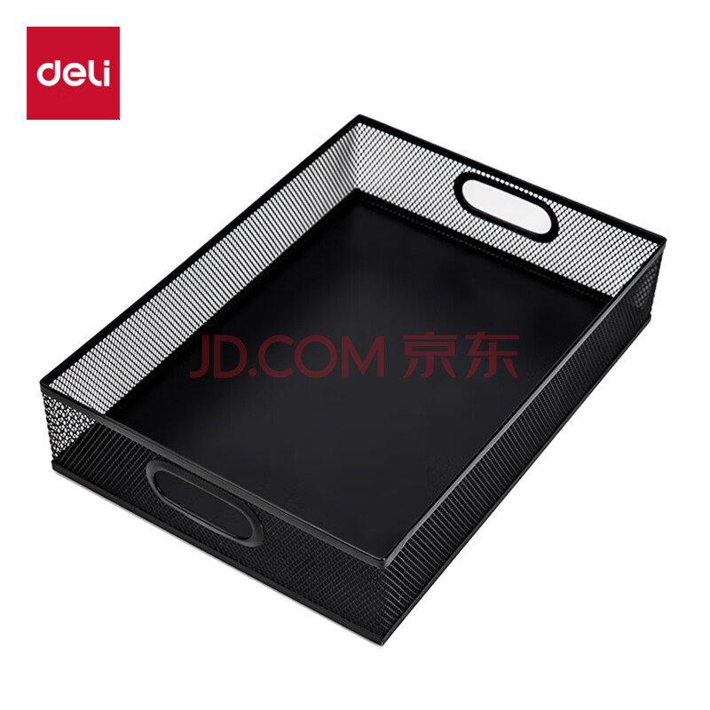 商品相册:得力(deli)金属商务方形文件篮 镂空网材文件桌面收纳文件架/资料架/文件篮 财务凭证发票单据发票 黑色79080第