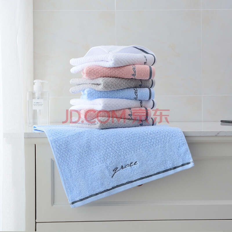 商品相册:洁丽雅(Grace)7A级抗菌毛巾纯棉吸水绣花素色柔软洁面巾擦脸巾单条装 兰色第