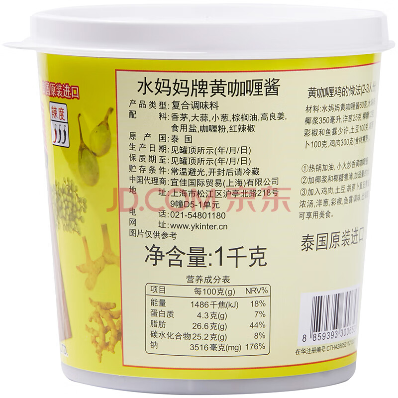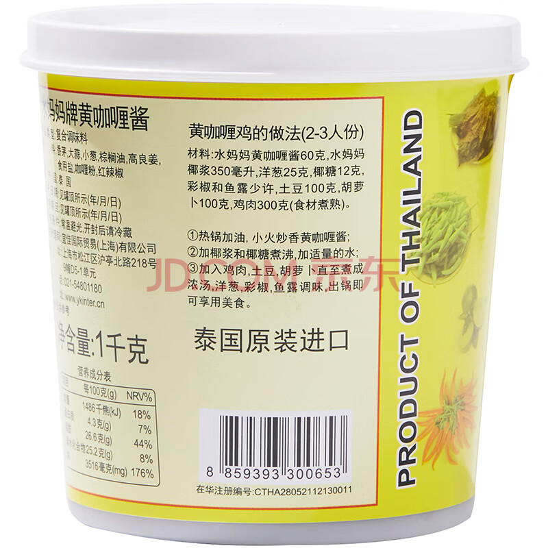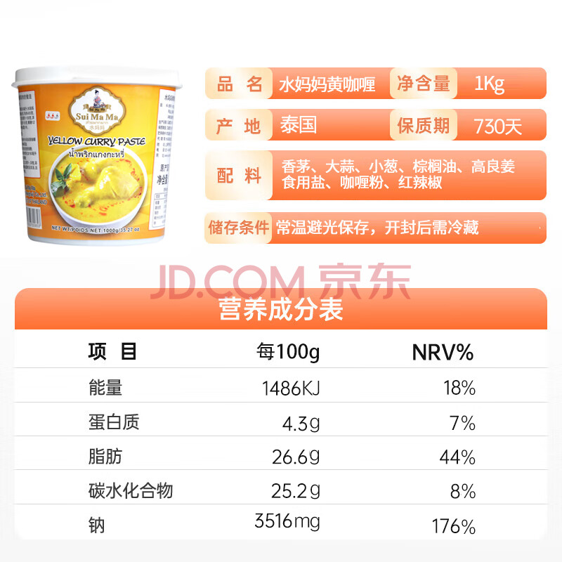商品相册:水妈妈泰国进口 黄咖喱酱泰国菜咖喱膏泰式咖喱鸡 牛肉咖喱饭 调味料1kg第