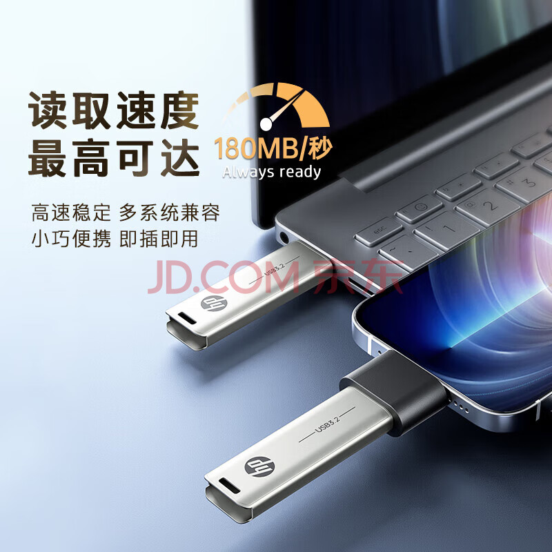 商品相册:惠普(HP)128GB USB3.2 U盘 X796W 高速读写 多功能学习办公 电脑车载金属优盘第