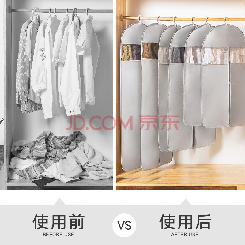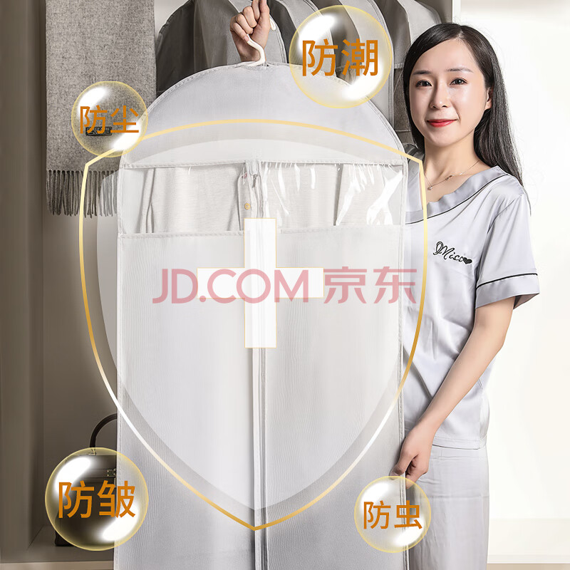 商品相册:JEKO&JEKO衣服防尘罩防尘袋10件套大衣羽绒服衣物收纳袋透明衣罩挂衣袋灰色第