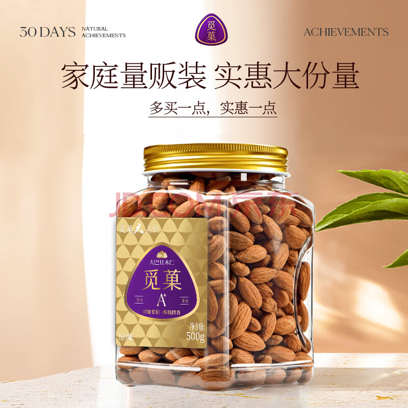 商品相册:觅菓(miguo)NP级大颗粒原味巴旦木仁A+级扁桃仁坚果炒货健康休闲零食500g/罐第1张/共6