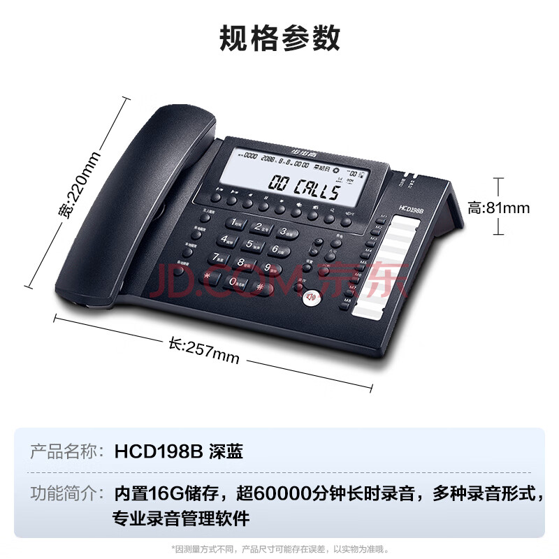 商品相册:步步高(BBK)录音电话机 固定座机 办公家用 长时录音 内置16G存储 密码保护 HCD198B深蓝第