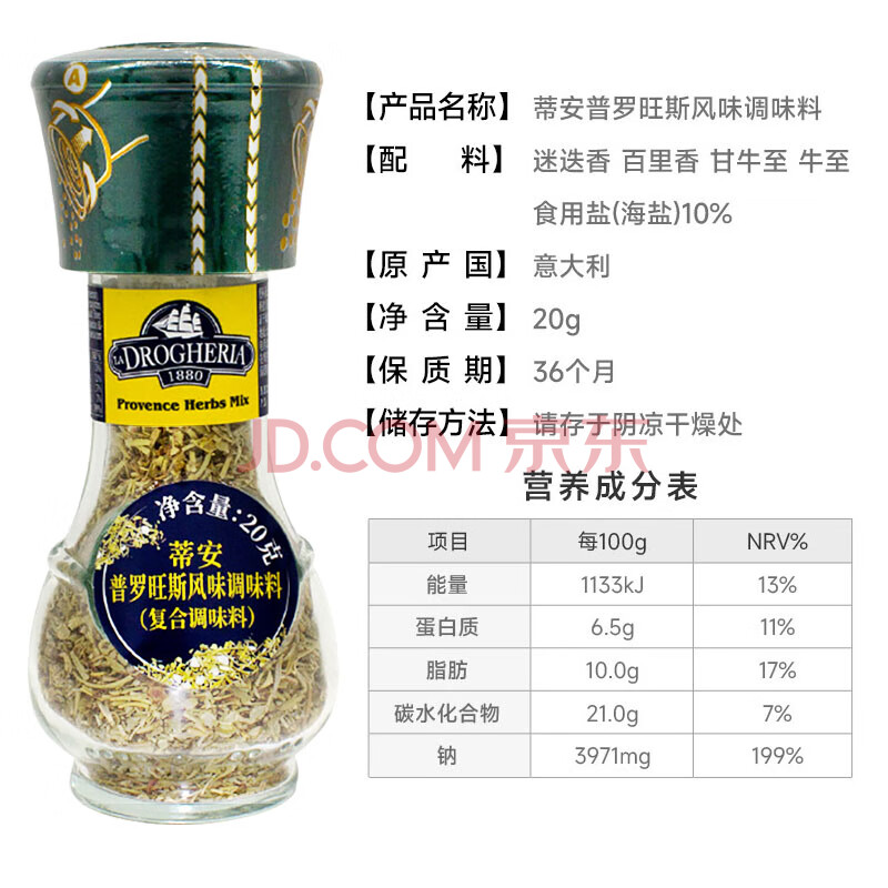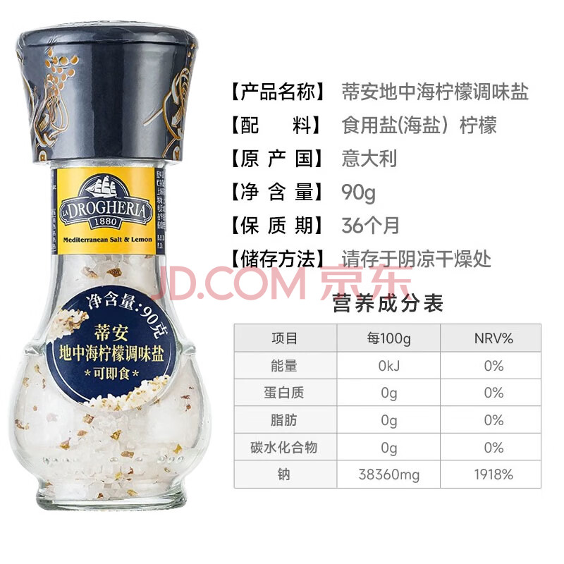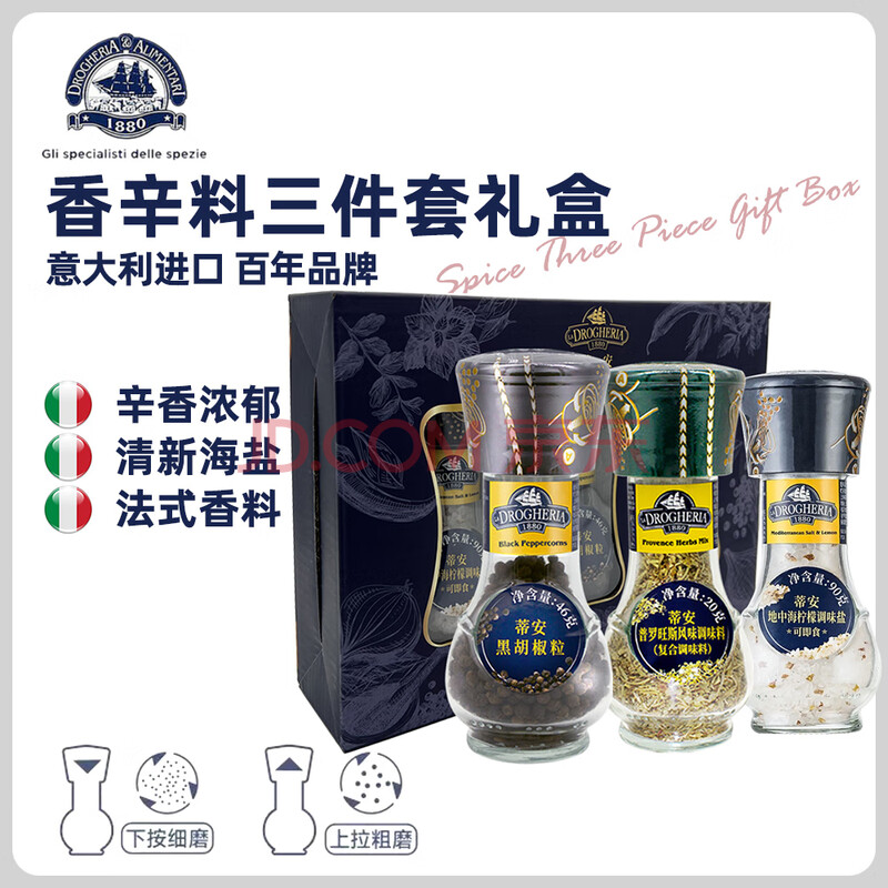商品相册:蒂安D&A地中海柠檬海盐+黑胡椒+普罗旺斯 研磨瓶156g礼盒 意大利进口第