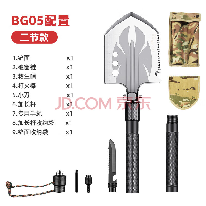 商品相册:神火 (supfire)BG05多功能户外工兵铲铁锹锰钢兵工铲折叠野外铲子军工铲用品 BG05-2节第
