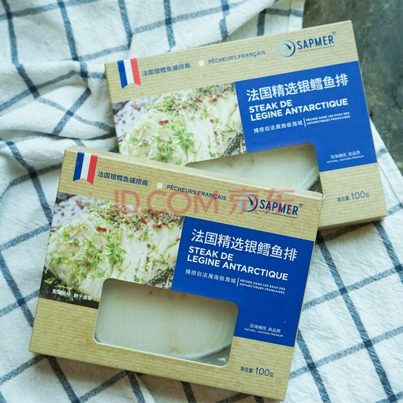 商品相册:SAPMER冷冻法国银鳕鱼净重100g(细鳞南极犬牙鱼)盒装尝鲜第