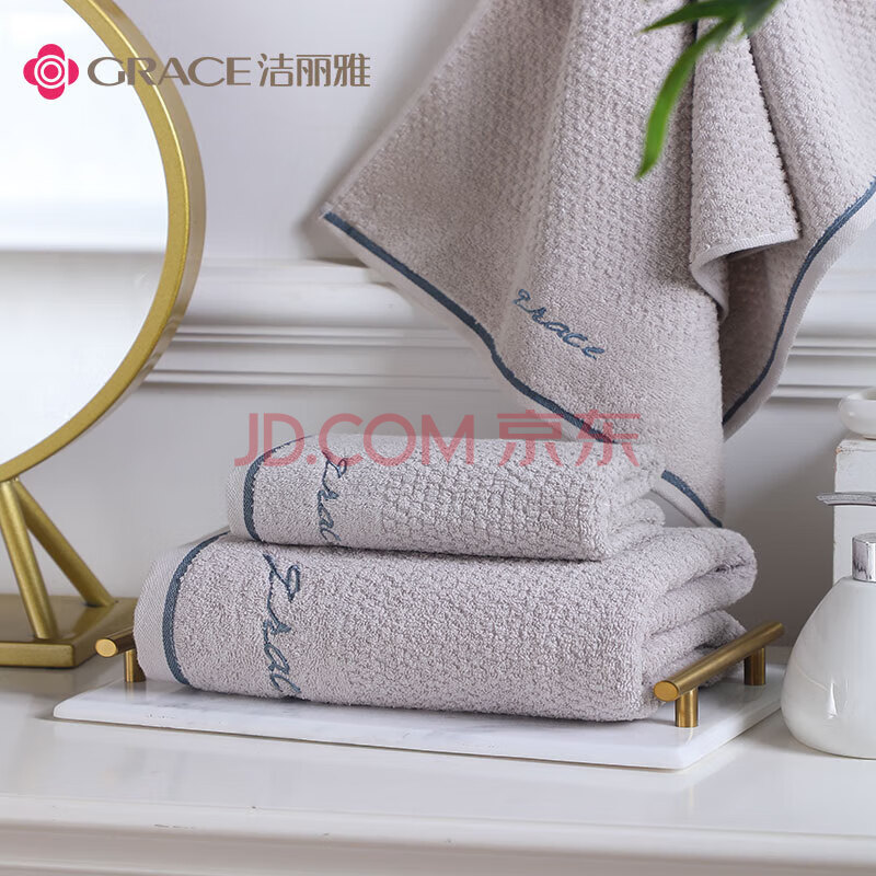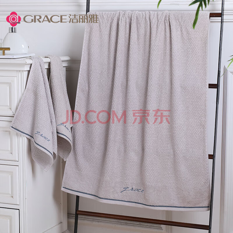 商品相册:洁丽雅(Grace)浴巾家用纯棉1浴巾+2毛巾组合装成人男女柔软吸水毛巾裹巾 灰色第