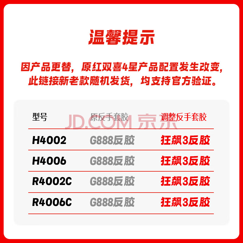 商品相册:红双喜 四星直拍对拍(京仓速发+6球+拍套)乒乓球拍H4006直拍双拍第