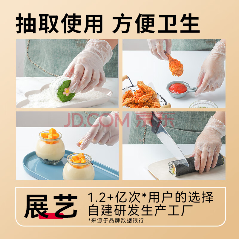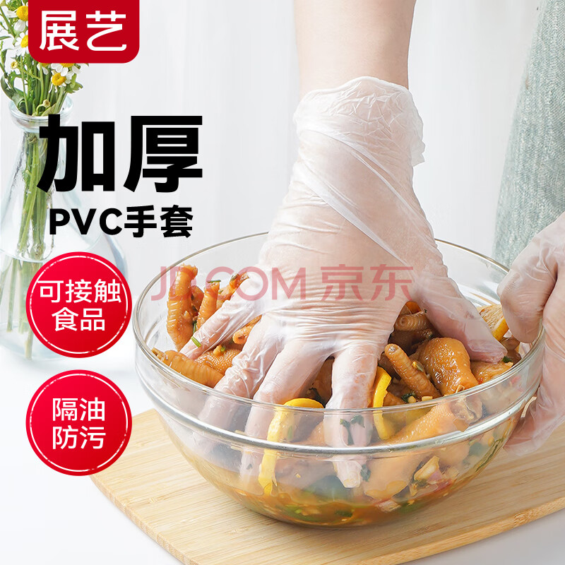 商品相册:展艺一次性PVC手套50只L号抽取式厨房烧烤露营烘焙加厚防护雪花酥露营第