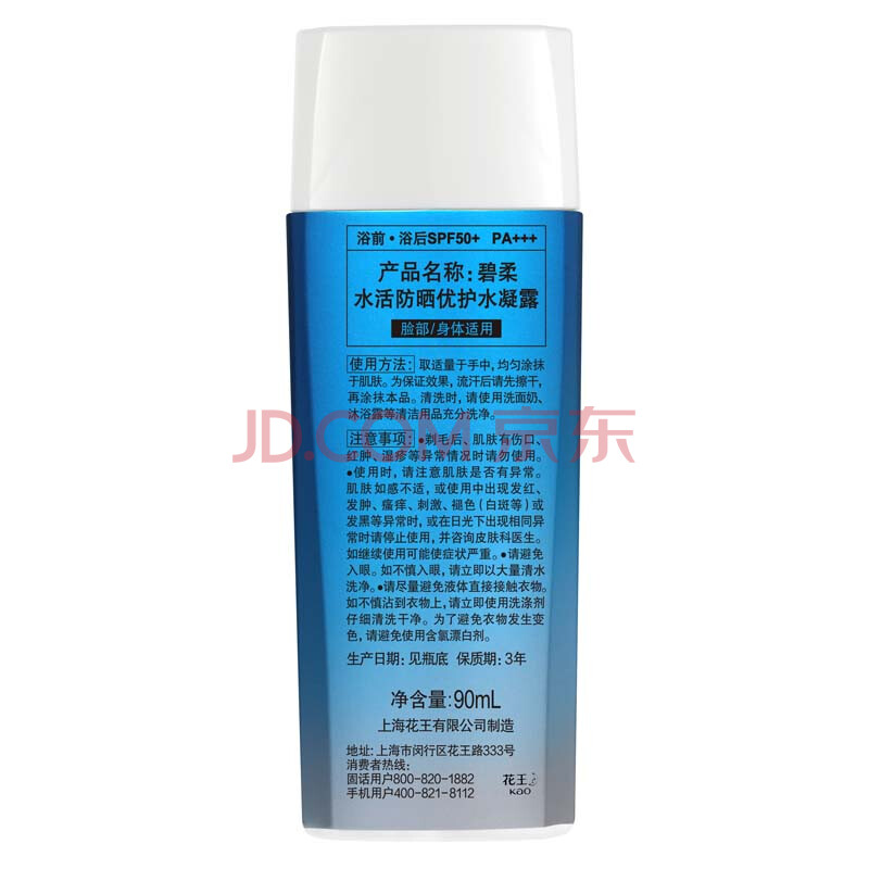 商品相册:碧柔(Biore)花王水活防晒水凝露90ml高倍防晒霜隔离霜防紫外线通勤出游礼物第
