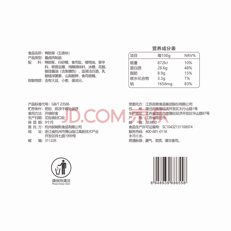 商品相册:百草味鸭锁骨甜辣味140g 熟食卤味休闲零食办公室解馋网红小吃第1张/共8