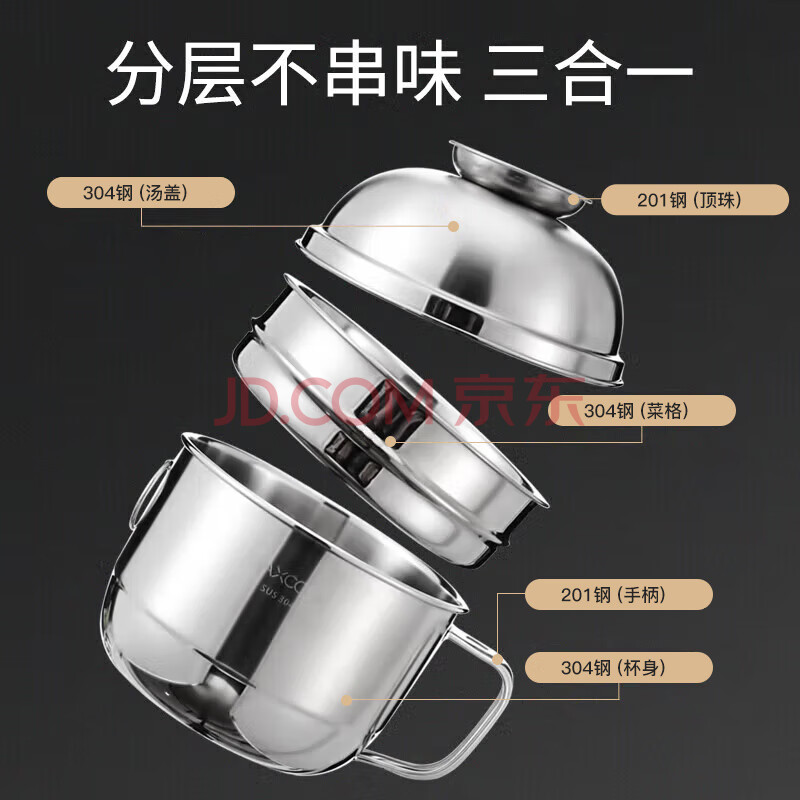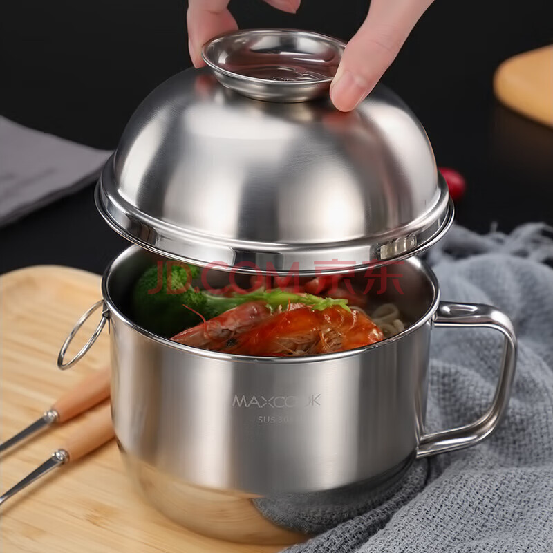 商品相册:美厨(MAXCOOK)304不锈钢饭盒 快餐杯碗学生饭盒 泡面碗泡面杯 二层14cm MCFT046第1张/共9