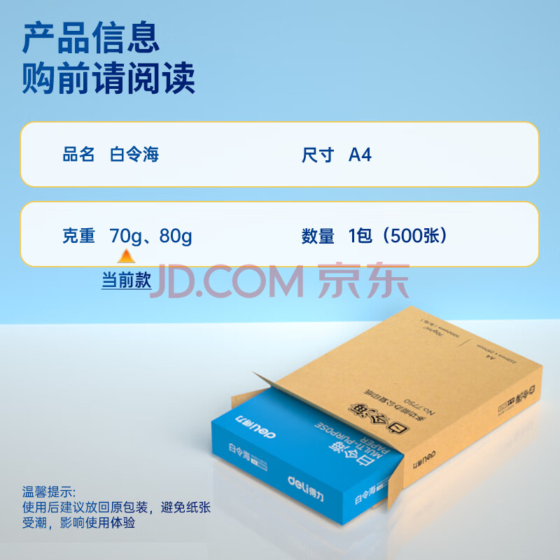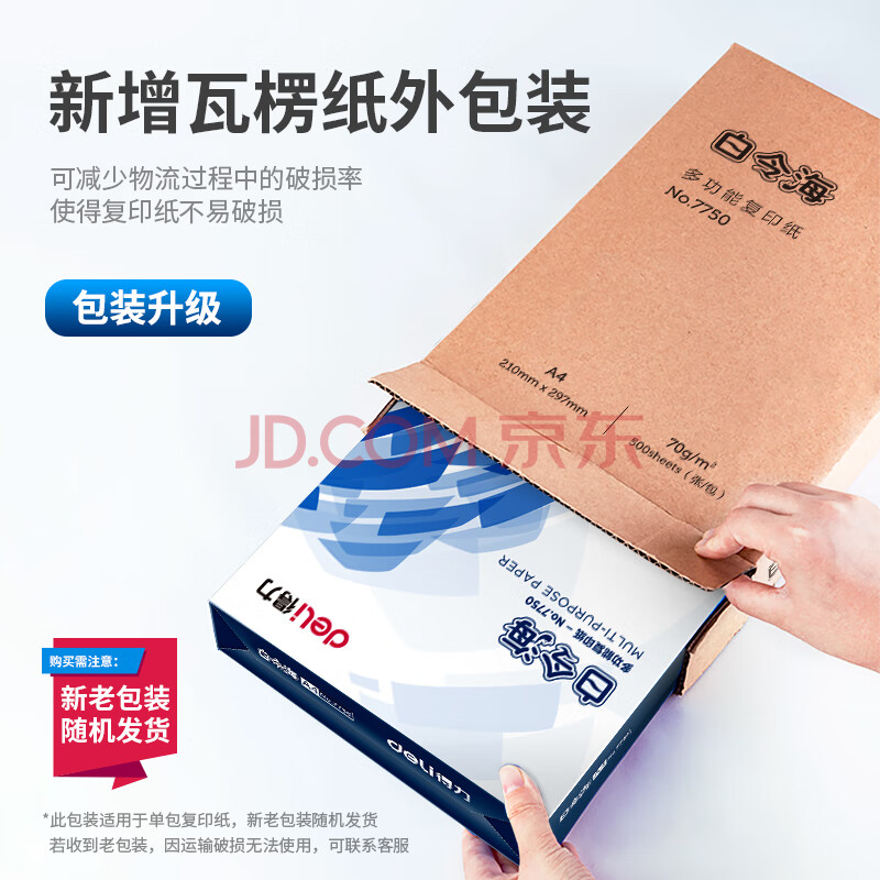 商品相册:得力(deli)白令海A4打印纸 70g500张单包复印纸 双面高性价比草稿纸 打印作业7750【经济热销】第