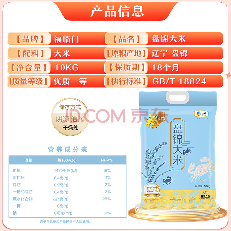 商品相册:福临门 东北大米 盘锦大米 20斤第