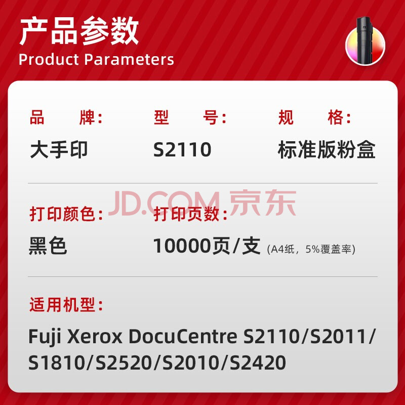 商品相册:大手印适用富士施乐s2110粉盒S1810硒鼓s2110墨盒s2011墨粉盒docucentre s2520 s2420打印复印机碳粉 大容2支第