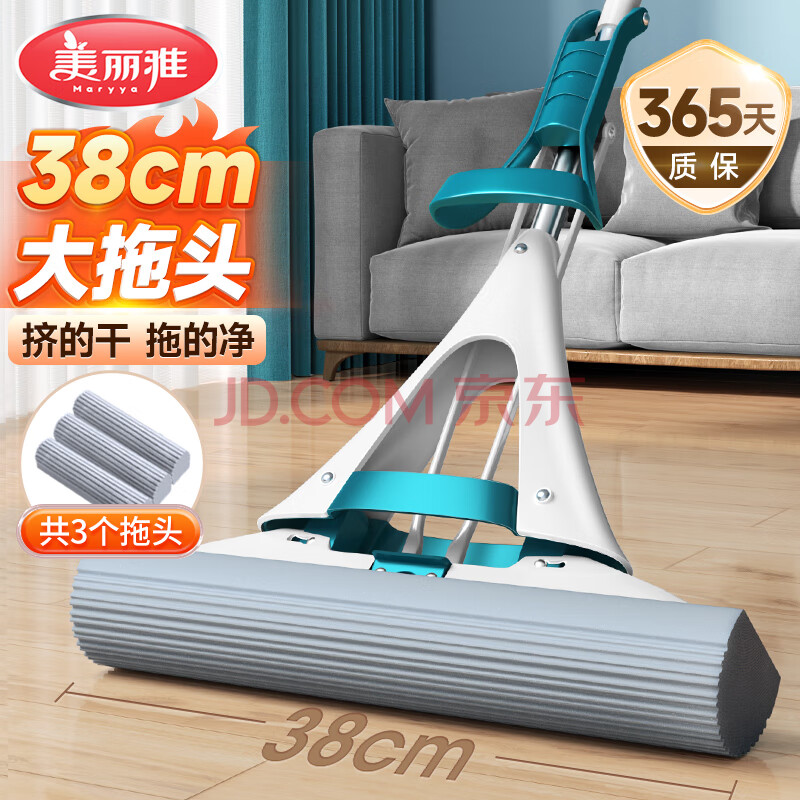 商品相册:美丽雅胶棉拖把38cm共3拖头吸水海绵家用一拖净免手洗懒人拖地神器第