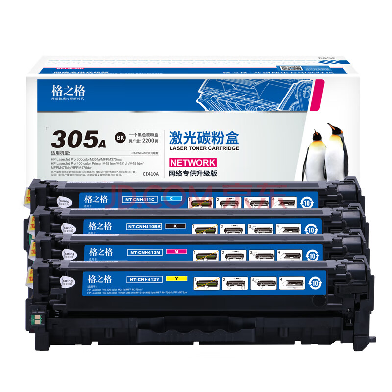 商品相册:格之格 CE410A硒鼓四支装适用惠普Pro300 M351a M375nw Pro400 M451dn 451dw M475dn 惠普305A硒鼓第