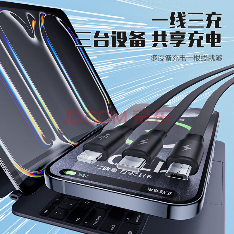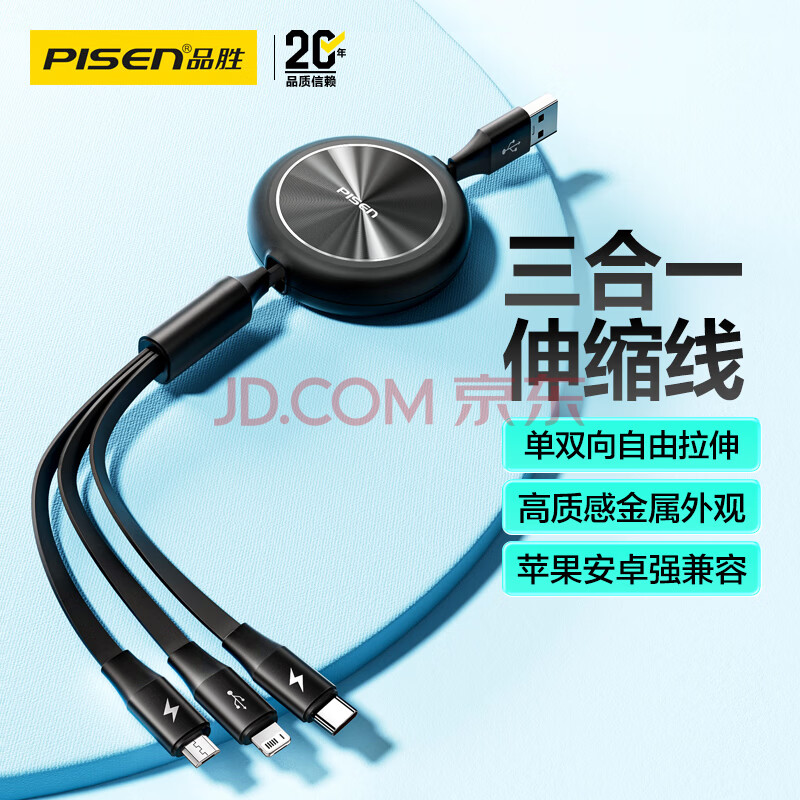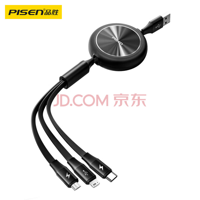 商品相册:品胜充电线三合一伸缩数据线一拖三头快充适用苹果iPhone17/16/15/14华为安卓Type-c手机多功能车载线第