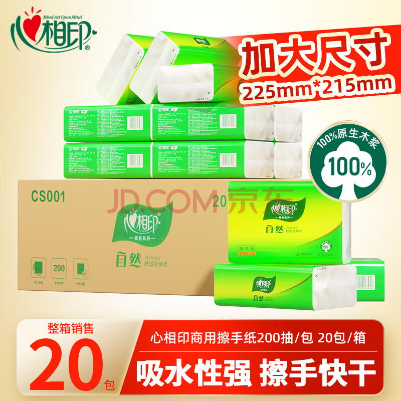 商品相册:心相印擦手纸商用1层200抽*20包卫生间檫手纸酒店厨房用纸CS001 新旧发第