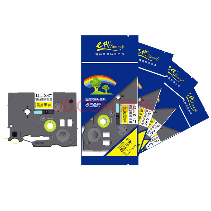 商品相册:e代标签色带12mm黄底黑字TZe-631标签色带4支装 适用brother兄弟PT-D210标签机打印机标签纸打印纸第