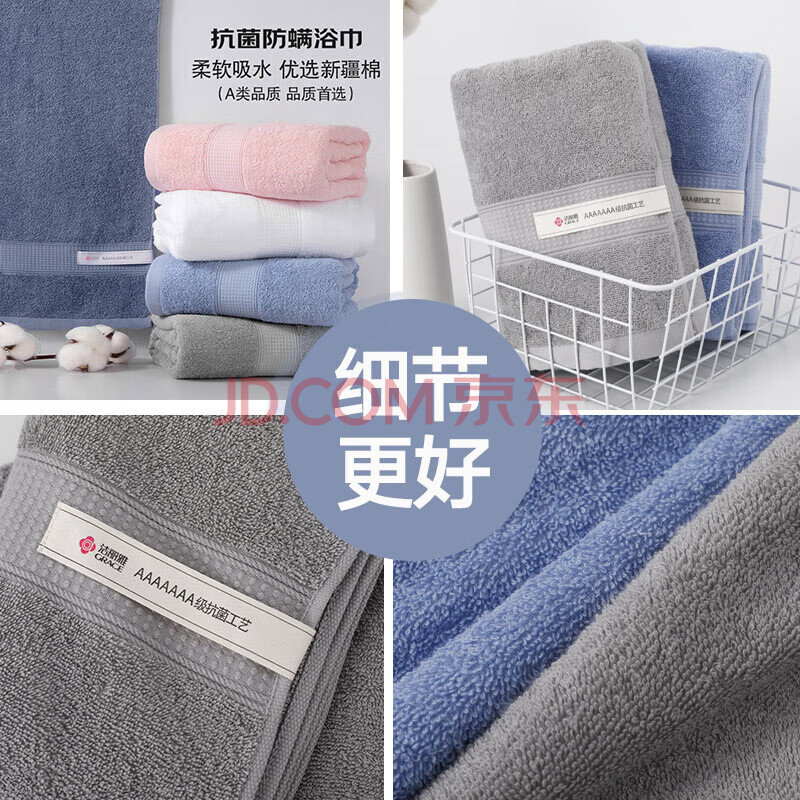 商品相册:洁丽雅(Grace)纯棉7A级抗菌防螨不易掉毛高档大浴巾男女士加大加厚酒店全棉浴巾第