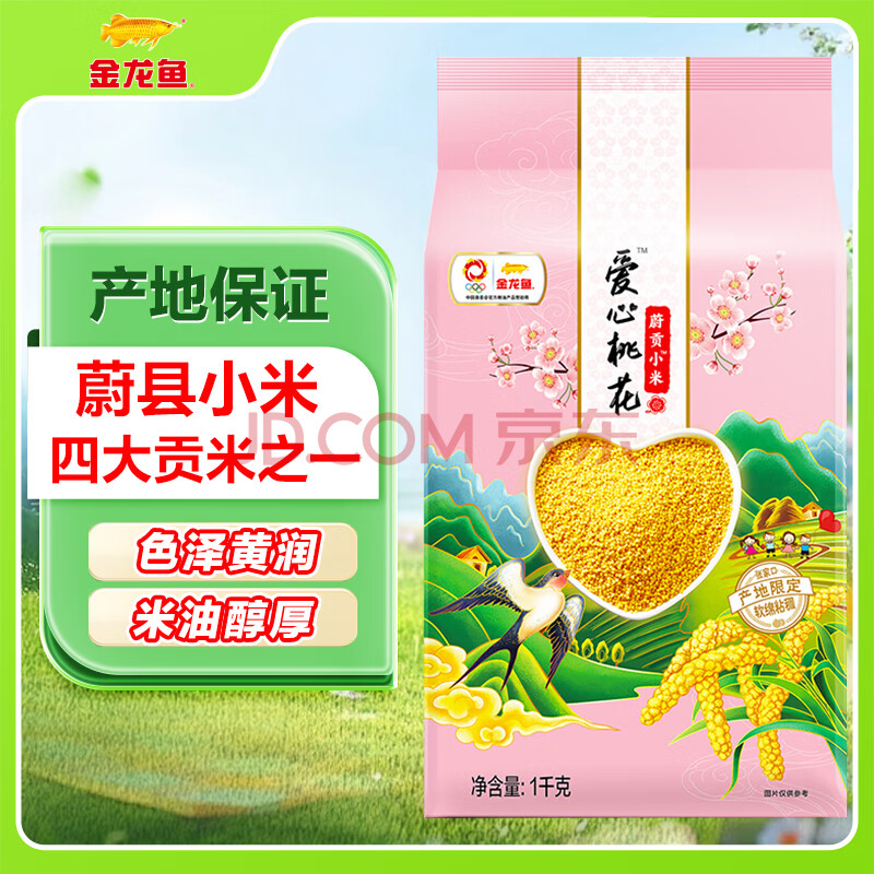 商品相册:金龙鱼蔚县小米2斤 小米杂粮 小米黄小米 黄小米 爱心桃花小米 米油醇厚第