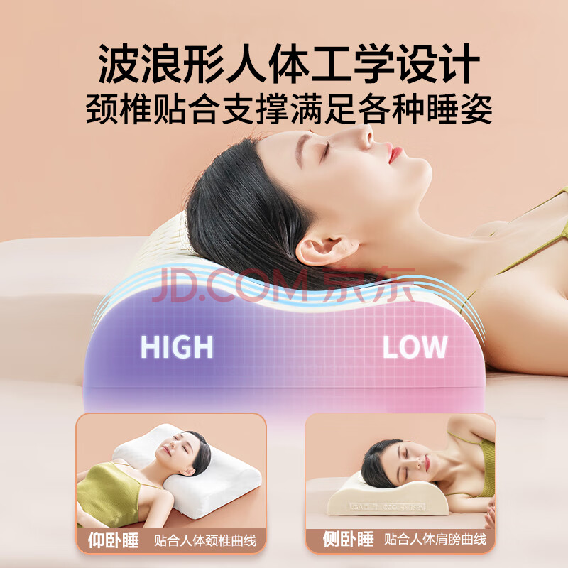 商品相册:京东京造 轻氧枕芯泰国原装进口 94%天然乳胶枕波浪款枕颈椎枕 高9cm低7cm第