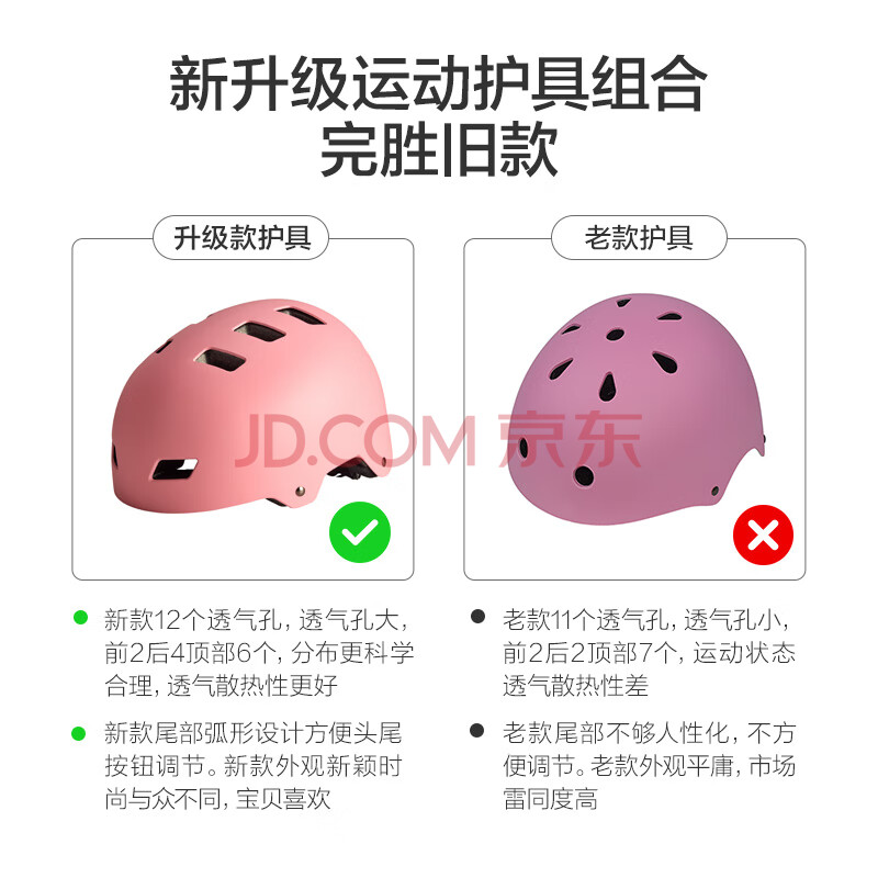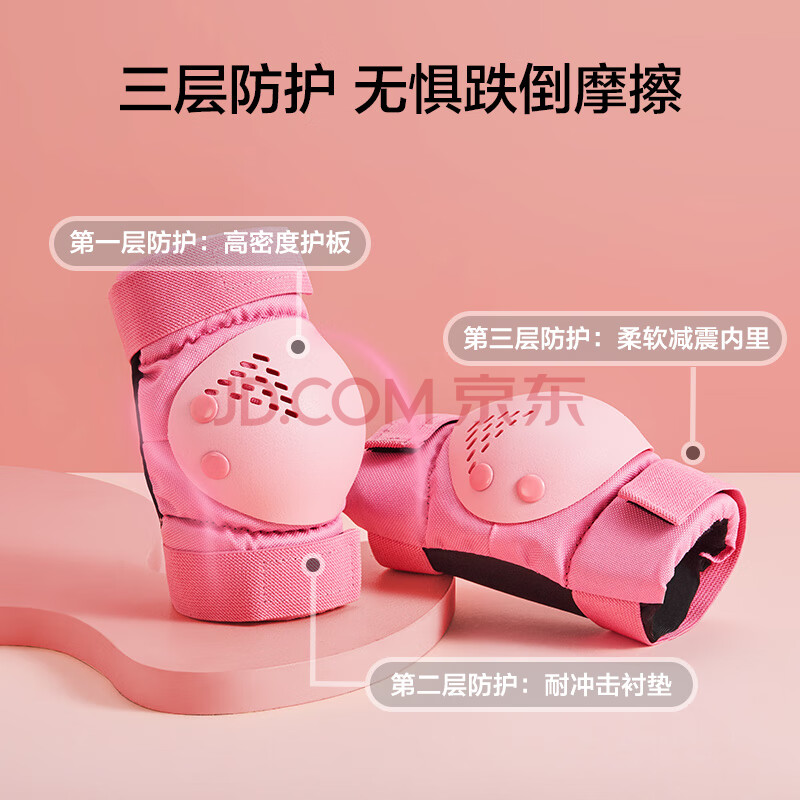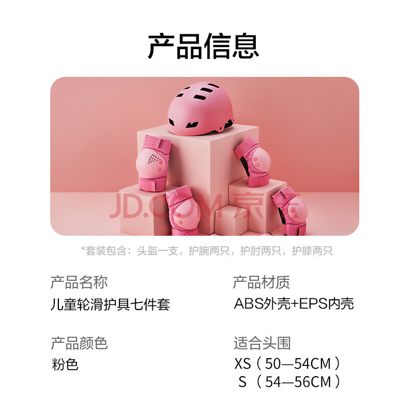 商品相册:京东京造 儿童轮滑护具 头盔护膝护肘护掌 自行车滑板平衡车护具粉色XS第