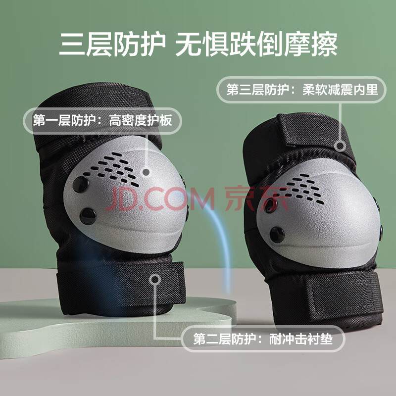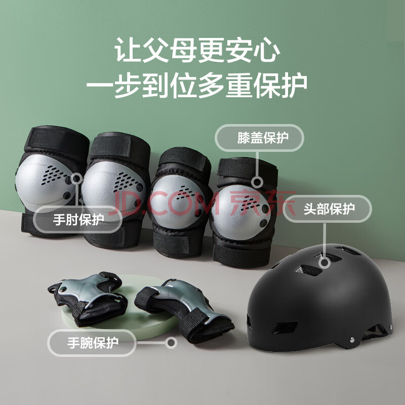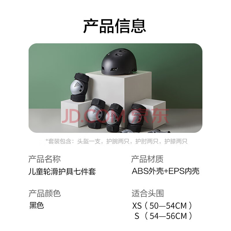 商品相册:京东京造儿童轮滑护具 头盔护膝护肘护掌 自行车滑板平衡车护具黑色XS第