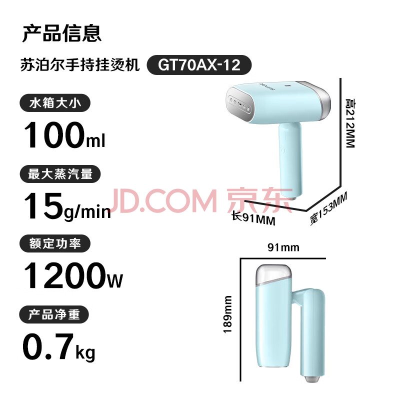 商品相册:苏泊尔(SUPOR)【迷你手持】手持挂烫机15g/min大蒸汽100ml家用挂烫机小型电熨斗便携式旅行神器GT70AX-12礼品第