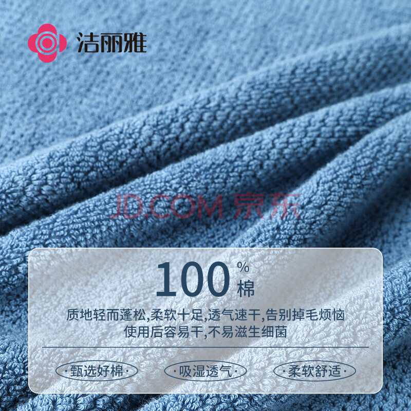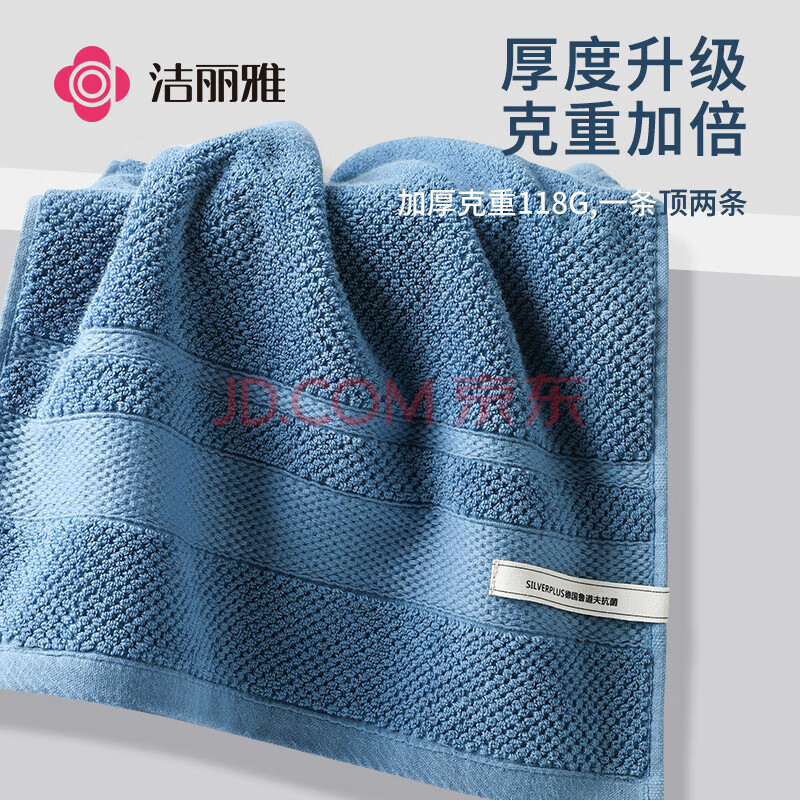 商品相册:洁丽雅(Grace)鲁道夫抗菌毛巾 纯棉大毛巾吸水长绒棉洁面擦脸洗脸巾118g 忧郁蓝第
