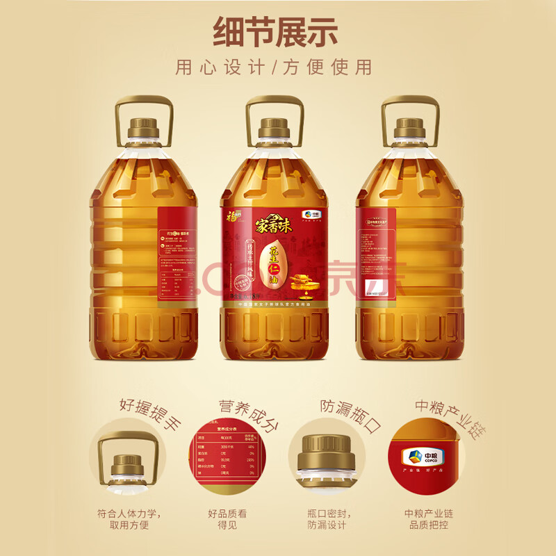 商品相册:家香味传承土榨压榨一级花生油6.18L【保真花生油】食用油 中粮第