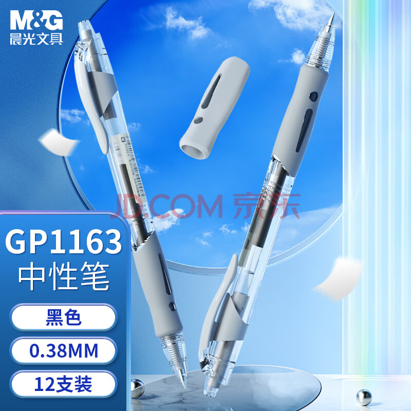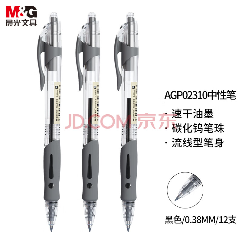 商品相册:晨光(M&G)文具按动中性笔学生0.38黑笔签字笔商务子弹头考试专用水笔高颜值办公用品 黑色 12支/盒第