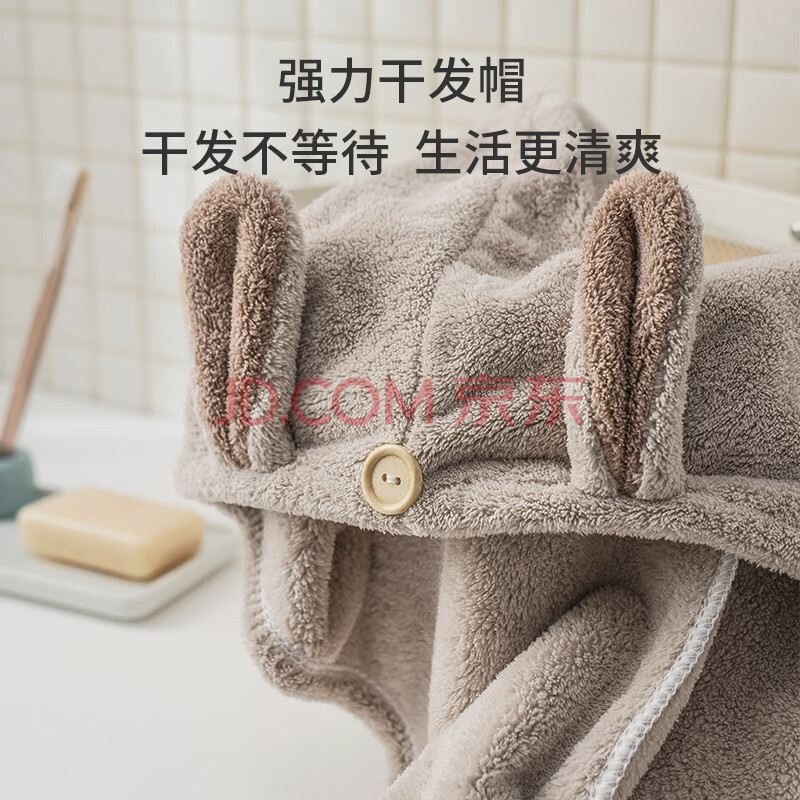 商品相册:京东京造 加厚干发帽 10A抗菌浴帽 超柔卡通耳饰超强吸水干发毛巾 浅棕色第1张/共9
