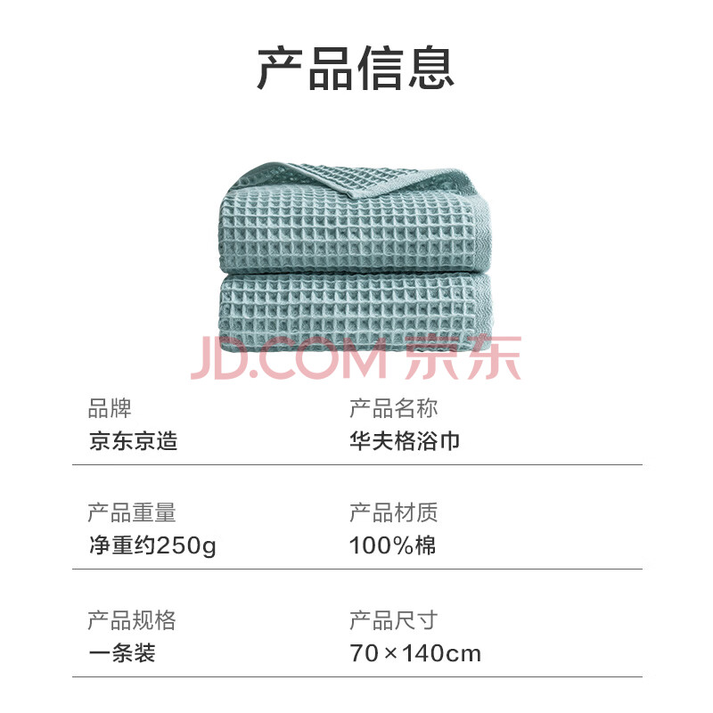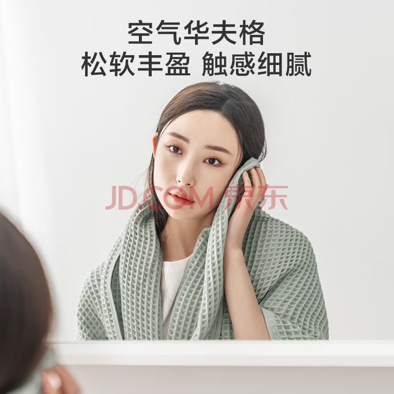 商品相册:京东京造 轻柔速干华夫格浴巾 纯棉A类不掉毛吸水男女加大洗澡浴巾 绿色第