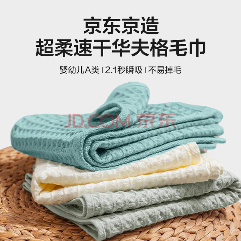 商品相册:京东京造 轻柔速干华夫格毛巾 纯棉A类不掉毛吸水长绒棉洗脸巾 单条 灰色第
