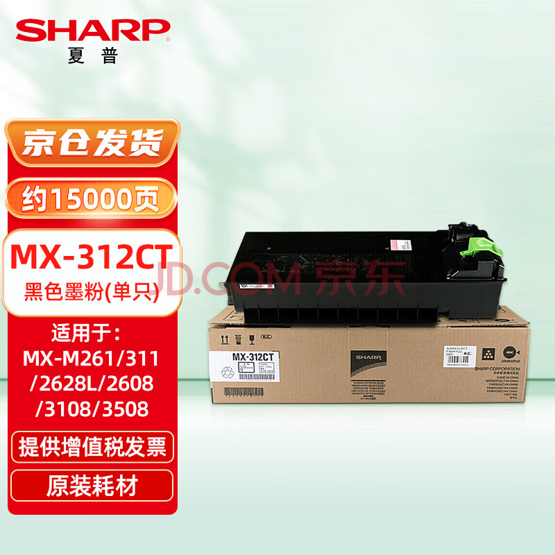 商品相册:夏普(SHARP)MX-312CT 原装黑色墨粉(适用MX-M261/311/2628L/2608/3108/3508机型)约15000页第