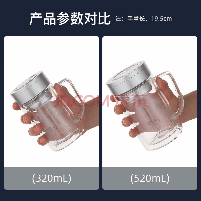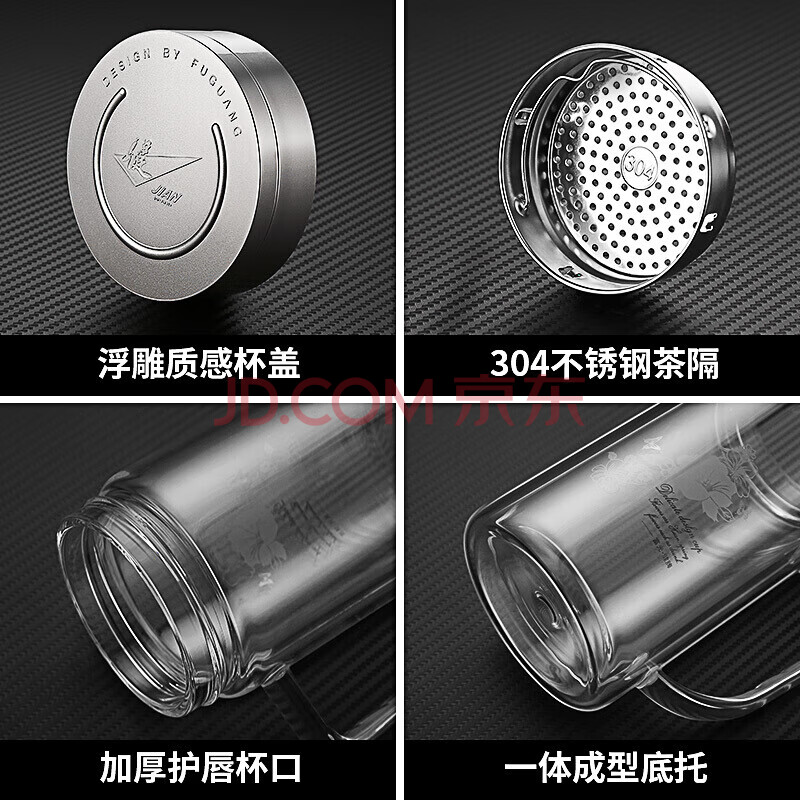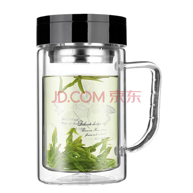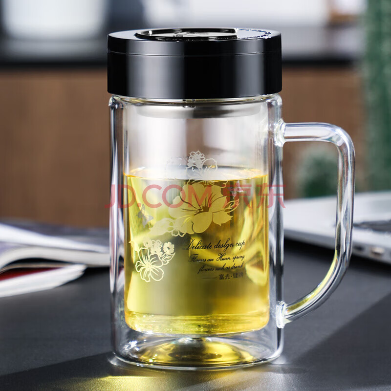 商品相册:富光双层玻璃杯商务泡茶杯子 大容量男女耐热办公水杯带把黑色320ml第