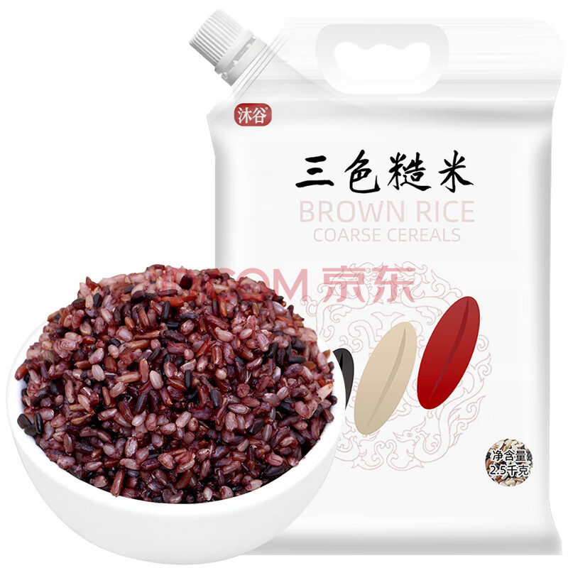 商品相册:沐谷东北三色糙米5斤 拧嘴袋装 玄米黑米红米混合粥五谷杂粮低脂米第