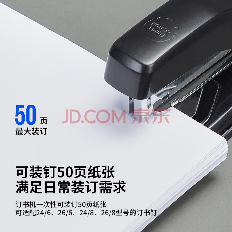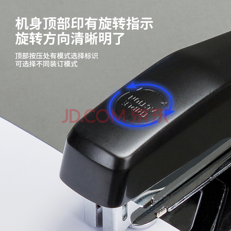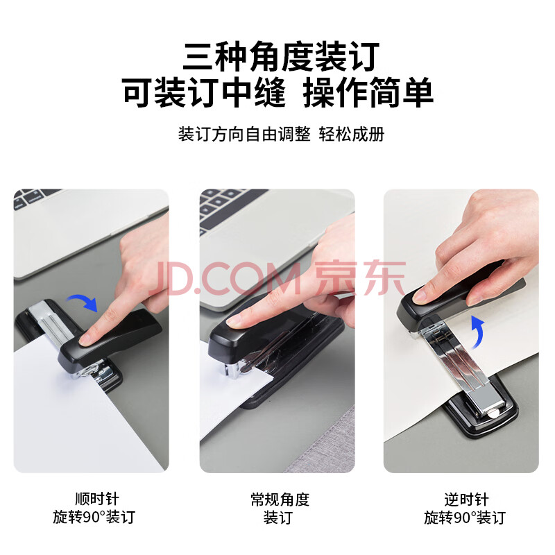 商品相册:得力(deli)50页旋转式订书机订书器厚层中号中缝装订可拆办公用品 黑色0414S第