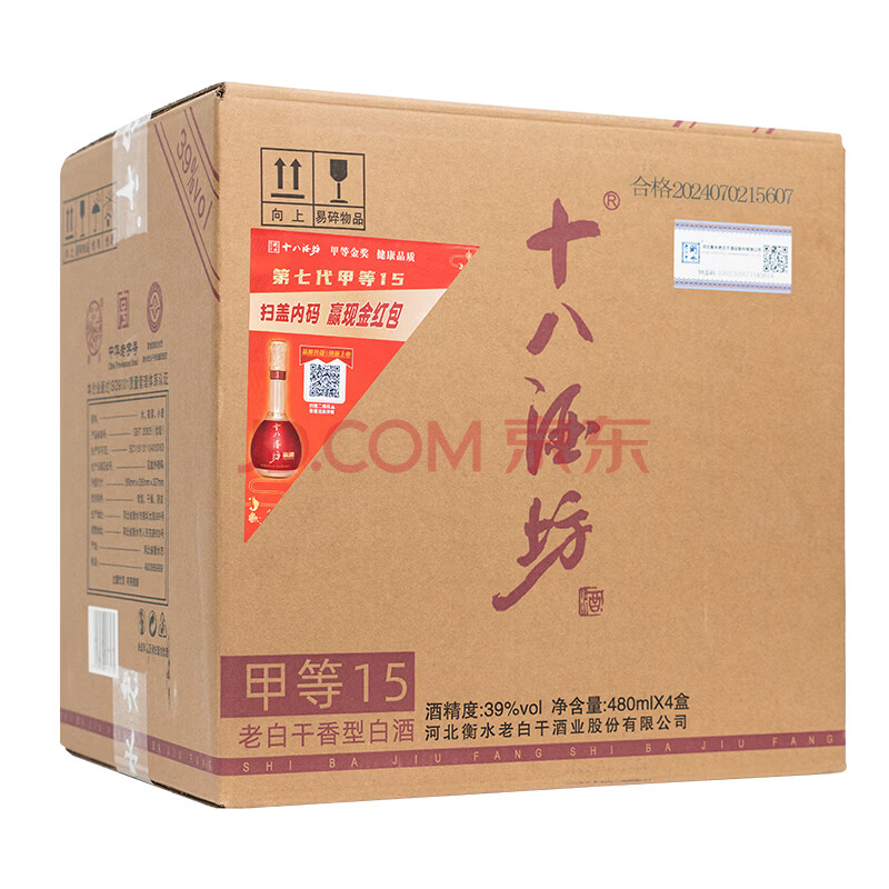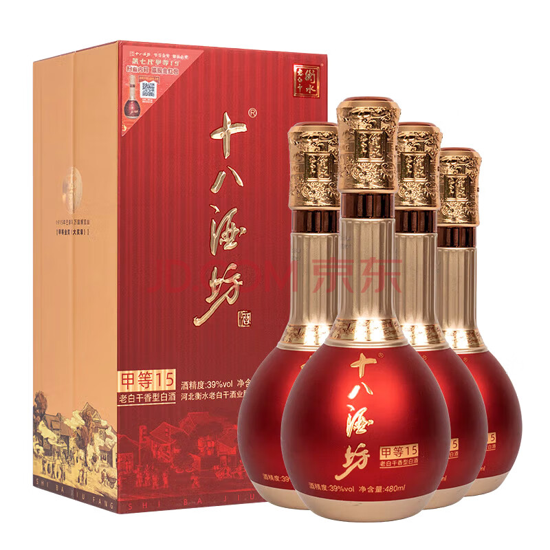 商品相册:十八酒坊衡水老白干 甲等15 老白干香型白酒 39度480ml*4瓶 整箱 送礼礼盒第