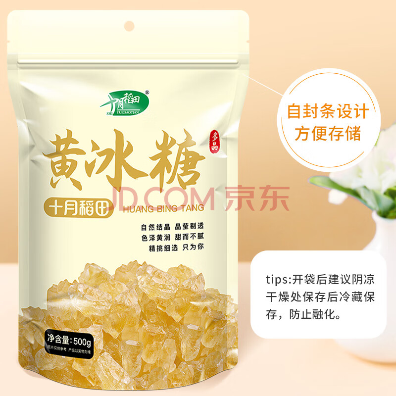 商品相册:十月稻田 黄冰糖500g 1斤 多晶蔗糖老冰糖 炒糖色 糖水泡茶甜汤厨房调味第