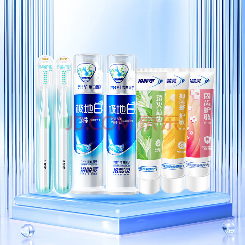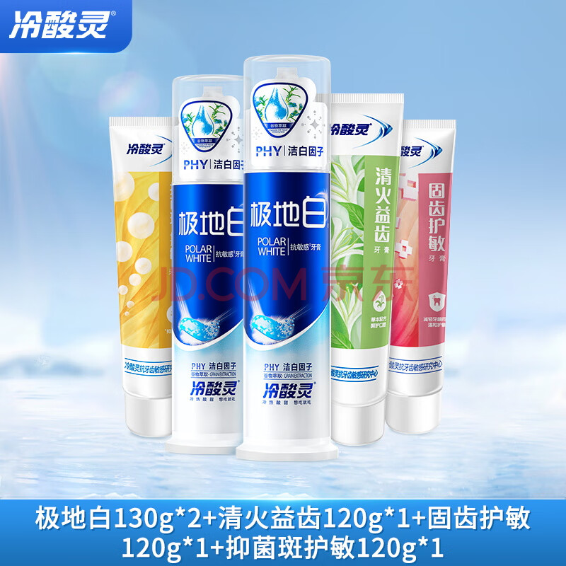 商品相册:冷酸灵多效护理牙膏套装 抗敏美白 清新口气 5支装共620g【吴磊推荐】第