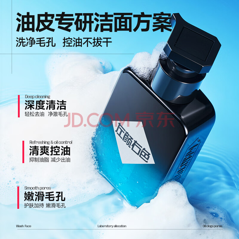 商品相册:左颜右色男士专用洗面奶深层清洁氨基酸去黑头护肤品控油保湿洁面乳150g第